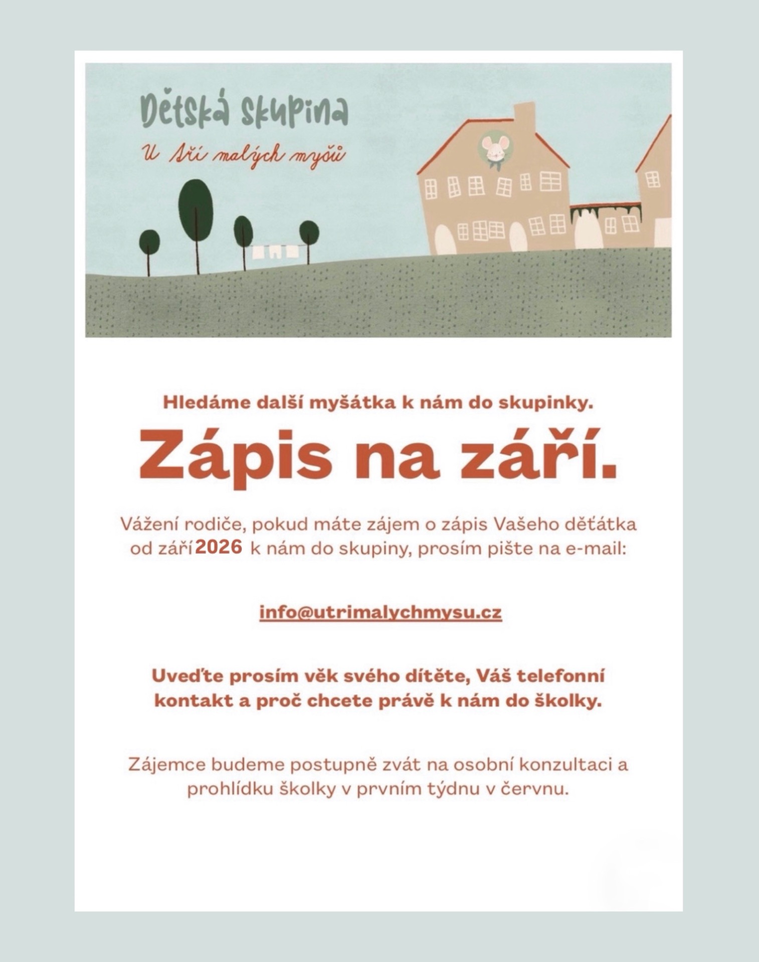*prosíme, první kontakt pouze e-mailem info@utrimalychmysu.cz